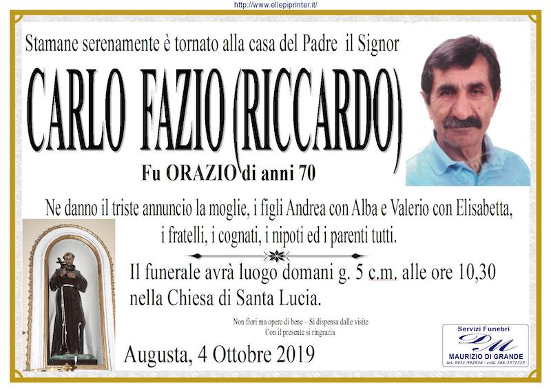 Necrologi – Si è spento il signor Carlo Fazio (Riccardo) di anni 70