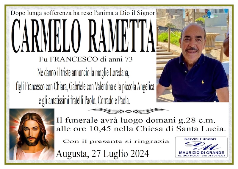 Necrologi – Si è spento il signor Carmelo Rametta di anni 73