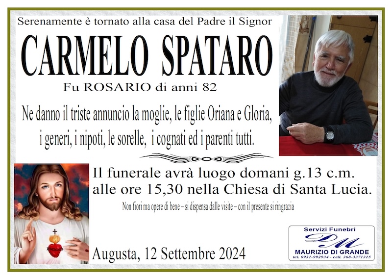 Necrologi – Si è spento il signor Carmelo Spataro di anni 82