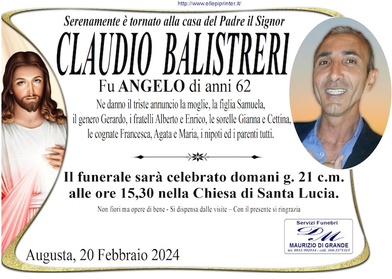 Necrologi – Si è spento il signor Claudio Balistreri di anni 62