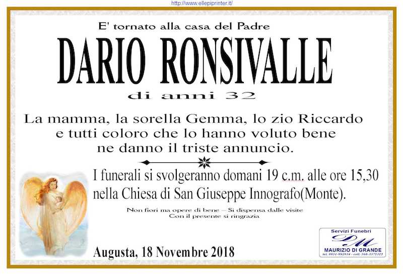 Necrologi – Si è spento il signor Dario Ronsivalle di anni 32