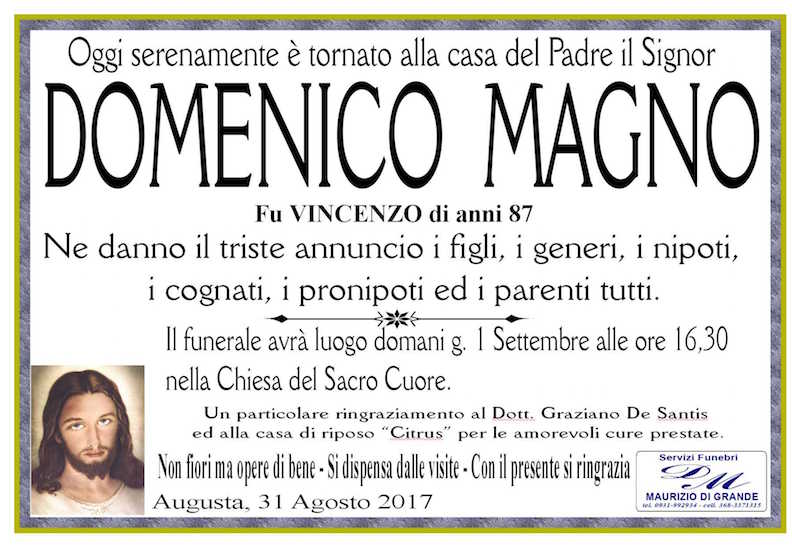 Necrologi – Si è spento il signor Domenico Magno di anni 87