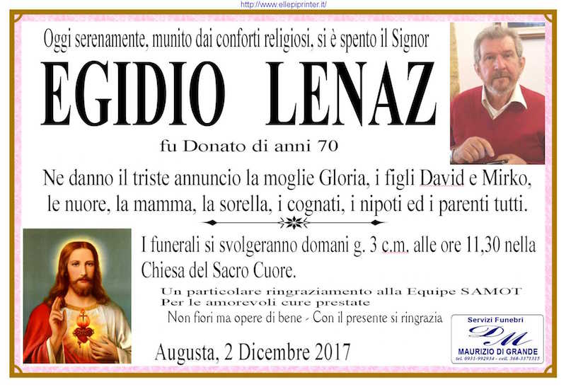 Necrologi – Si è spento il signor Egidio Lenaz di anni 70