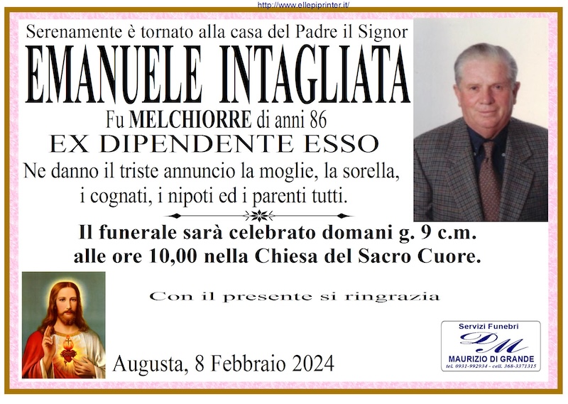 Necrologi – Si è spento il signor Emanuele Intagliata di anni 86