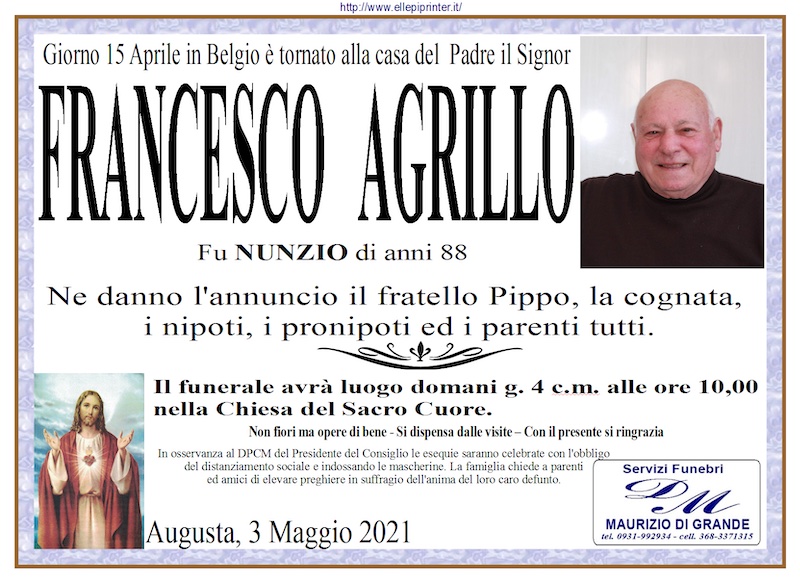 Necrologi – Si è spento il signor Francesco Agrillo di anni 88