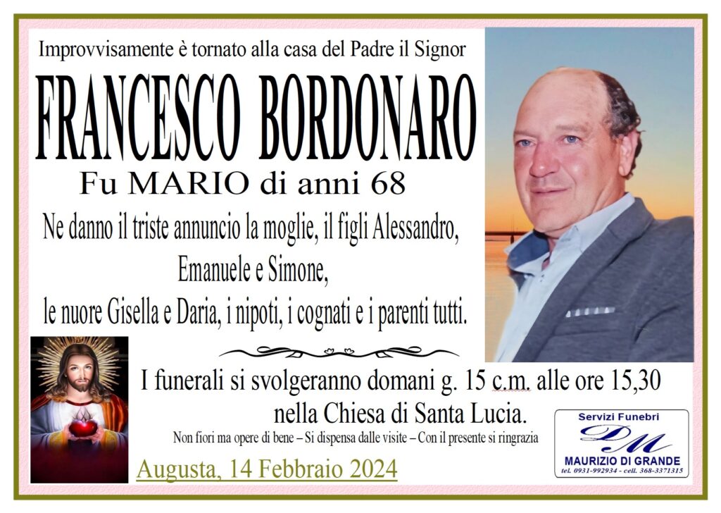 Necrologi – Si è spento il signor Francesco Bordonaro di anni 68