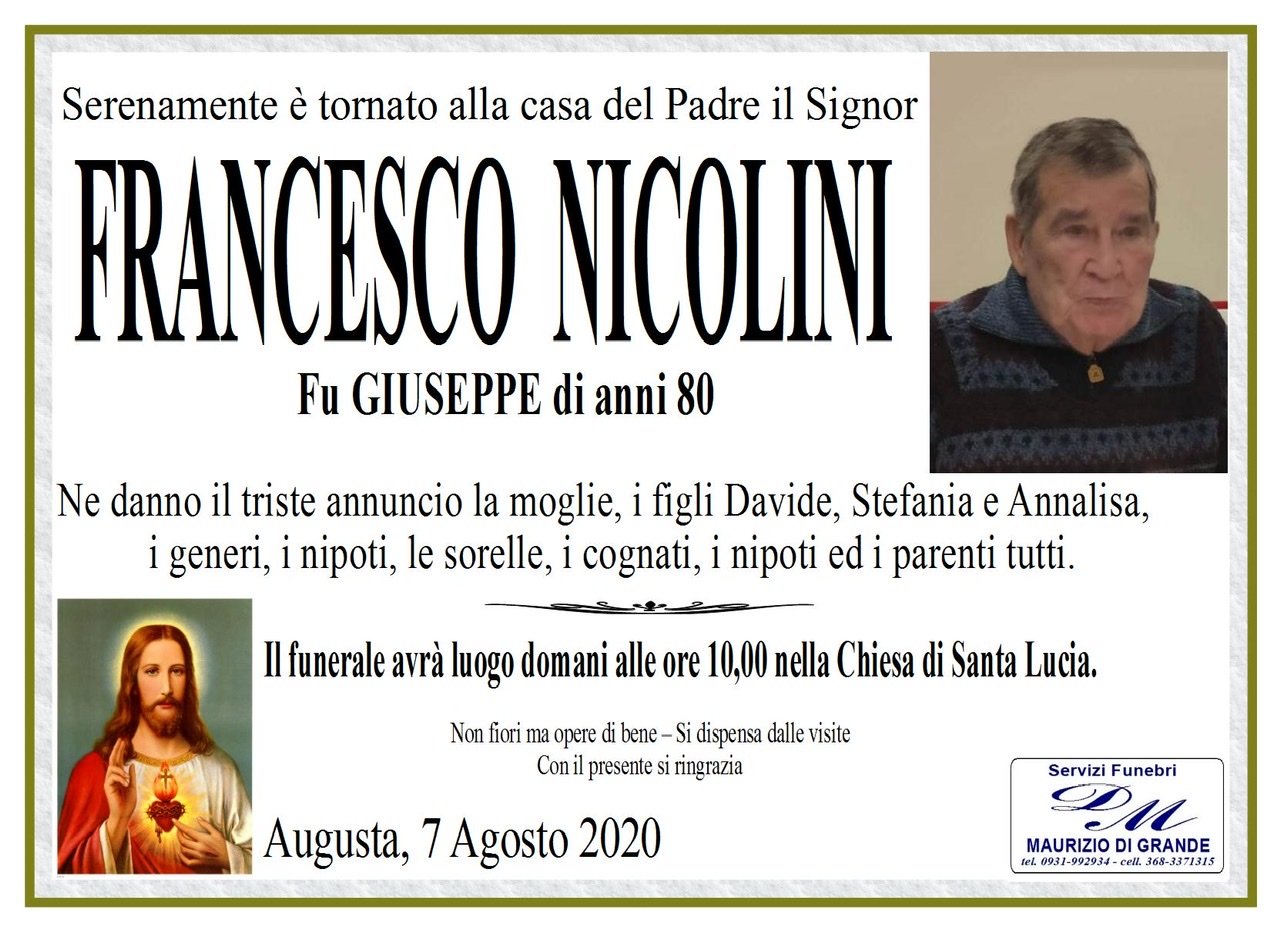 Necrologi – Si è spento il signor Francesco Nicolini di anni 80