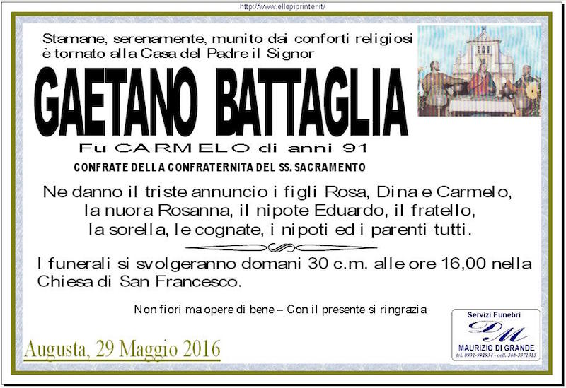 Necrologi – Si è spento il signor Gaetano Battaglia di anni 91