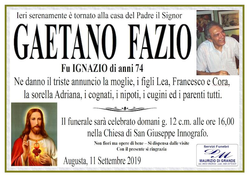 Necrologi – Si è spento il signor Gaetano Fazio di anni 74