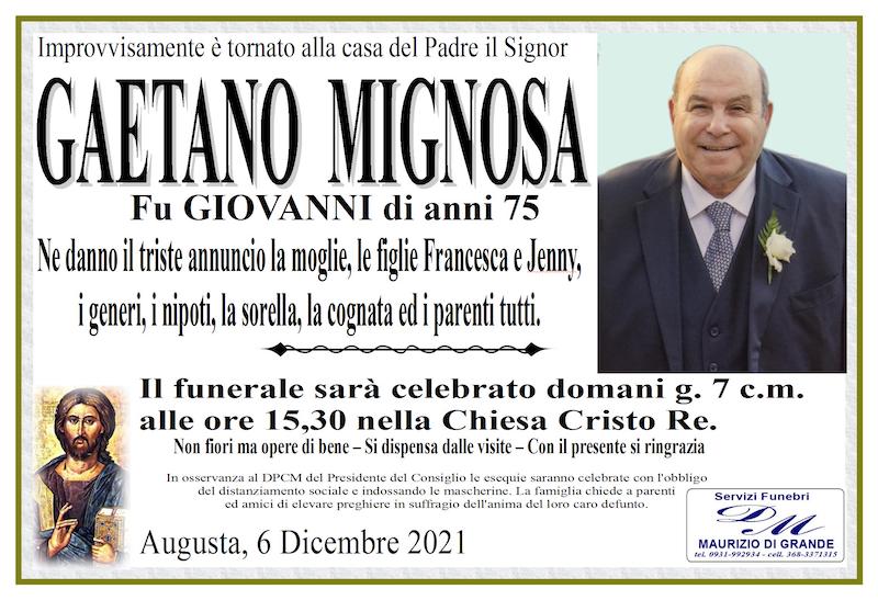 Necrologi – Si è spento il signor Gaetano Mignosa di anni 75