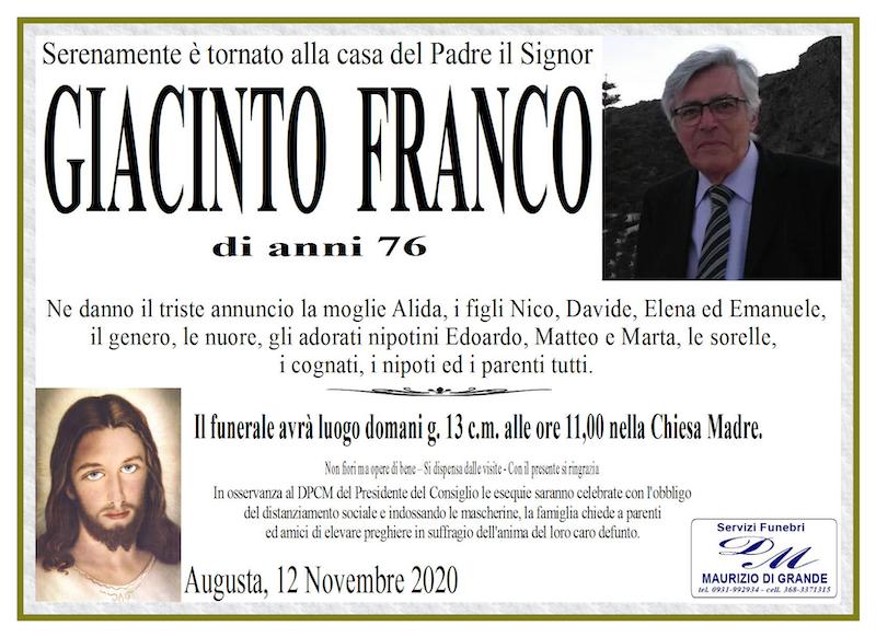 Necrologi – Si è spento il signor Giacinto Franco di anni 76