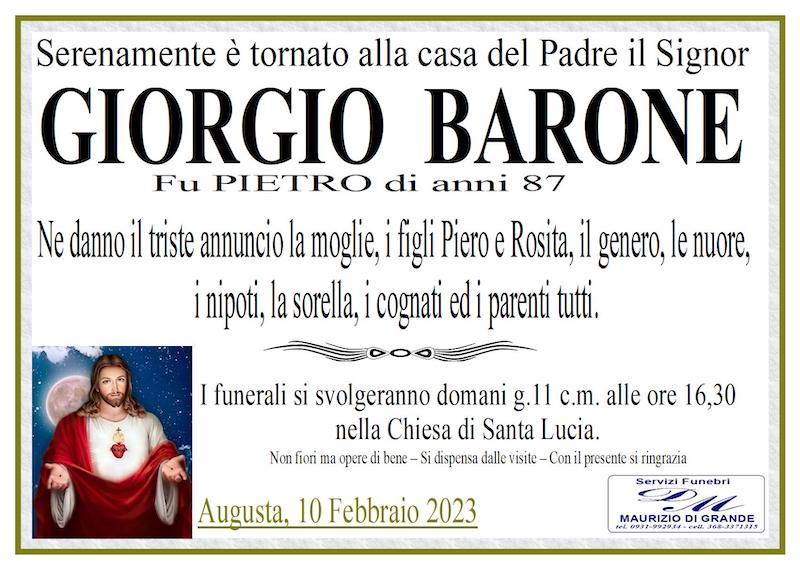 Necrologi – Si è spento il signor Giorgio Barone di anni 87