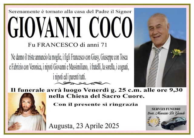 Necrologi – Si è spento il signor Giovanni Coco di anni 71