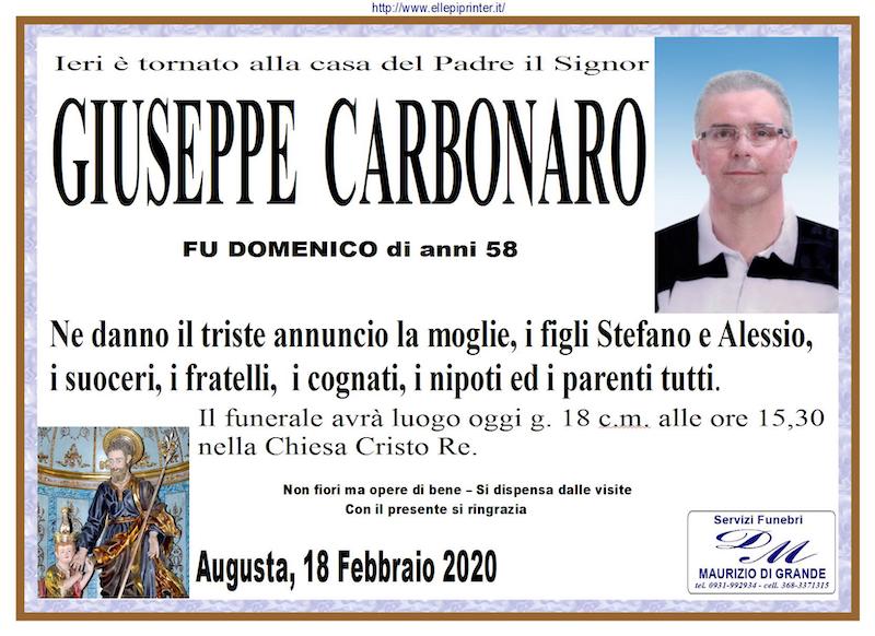 Necrologi – Si è spento il signor Giuseppe Carbonaro di anni 58