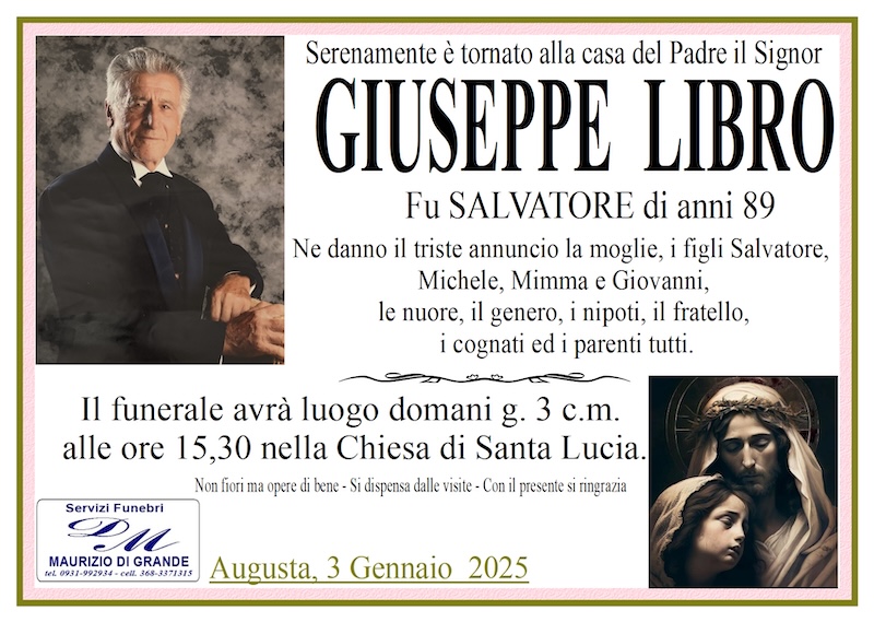Necrologi – Si è spento il signor Giuseppe Libro di anni 89
