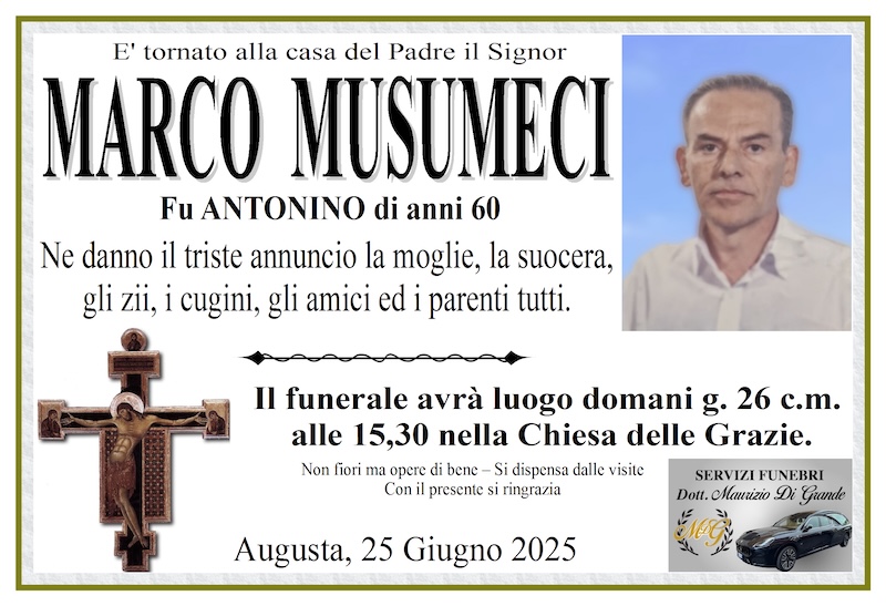 Necrologi – Si è spento il signor Marco Musumeci di anni 60