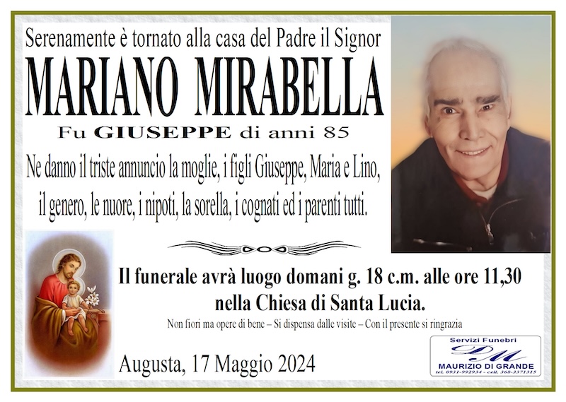 Necrologi – Si è spento il signor Mariano Mirabella di anni 85