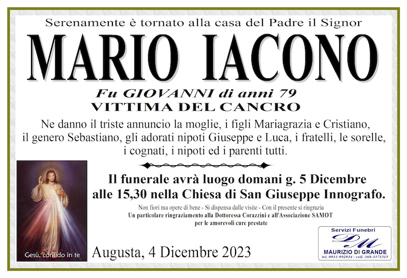 Necrologi – Si è spento il signor Mario Iacono di anni 79