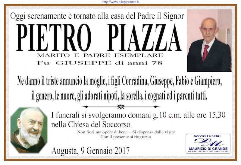 Necrologi – Si è spento il signor Pietro Piazza di anni 78
