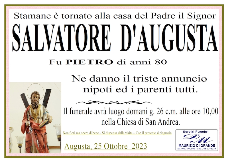 Necrologi – Si è spento il signor Salvatore D’Augusta di anni 80