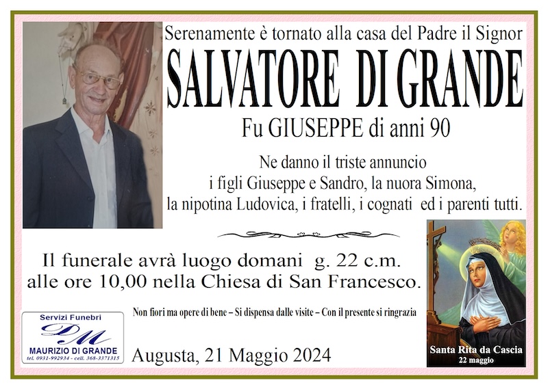 Servizi funebri Maurizio Di Grande – Viale Italia, 99 – Augusta – Tel. 0931 992934 – Cell. 368 3371315