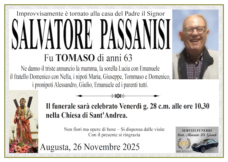 Necrologi – Si è spento il signor Salvatore Passanisi di anni 63
