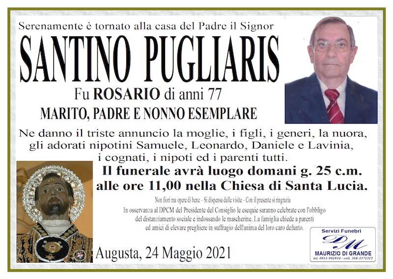 Necrologi – Si è spento il signor Santino Pugliaris di anni 77