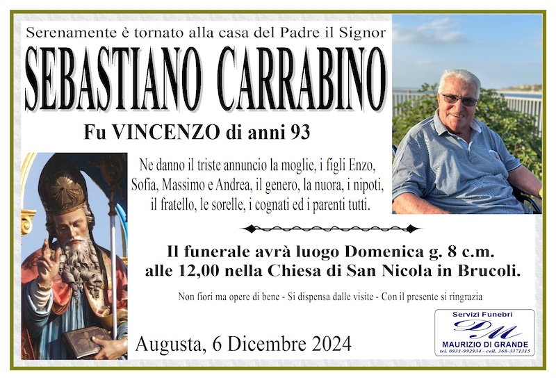 Necrologi – Si è spento il signor Sebastiano Carrabino di anni 93