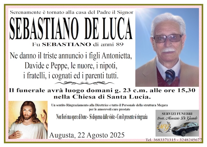 Necrologi – Si è spento il signor Sebastiano De Luca di anni 89