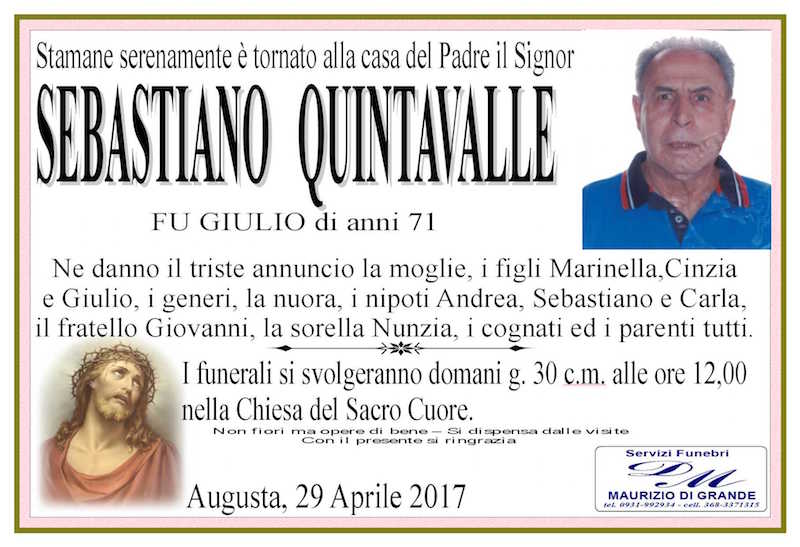 Necrologi – Si è spento il signor Sebastiano Quintavalle di anni 71