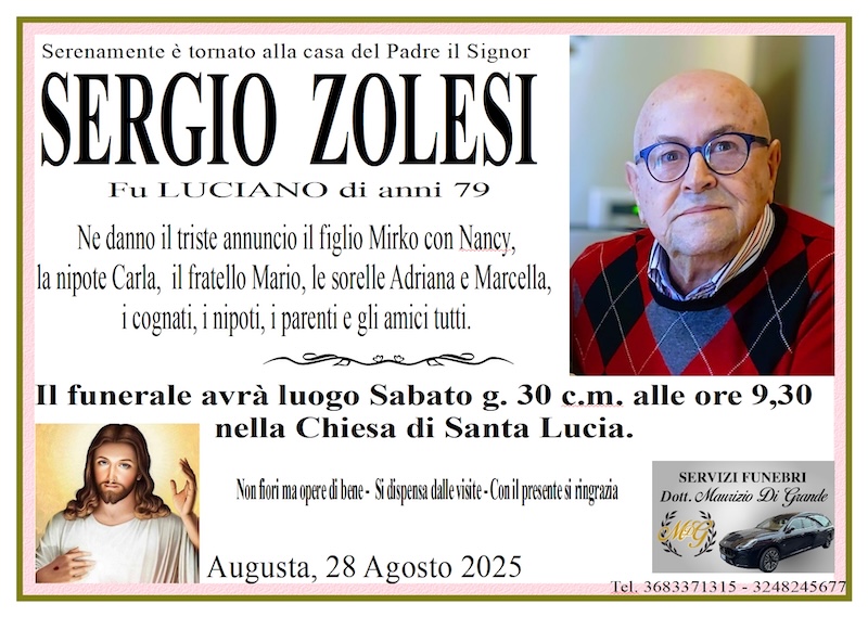 Necrologi – Si è spento il signor Sergio Zolesi di anni 79
