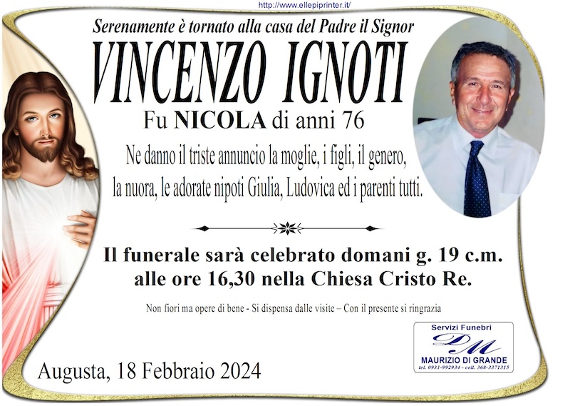 Necrologi – Si è spento il signor Vincenzo Ignoti di anni 76