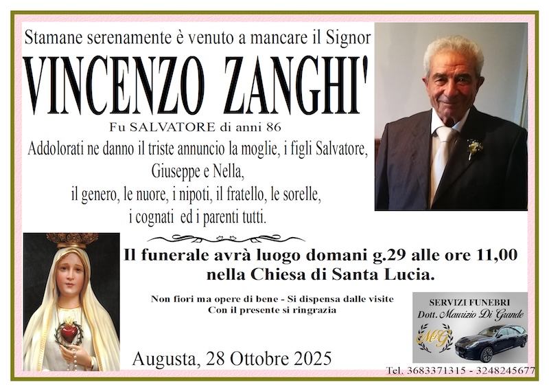 Necrologi – Si è spento il signor Vincenzo Zanghì di anni 86