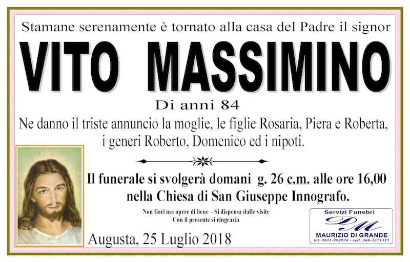Necrologi – Si è spento il signor Vito Massimino di anni 84