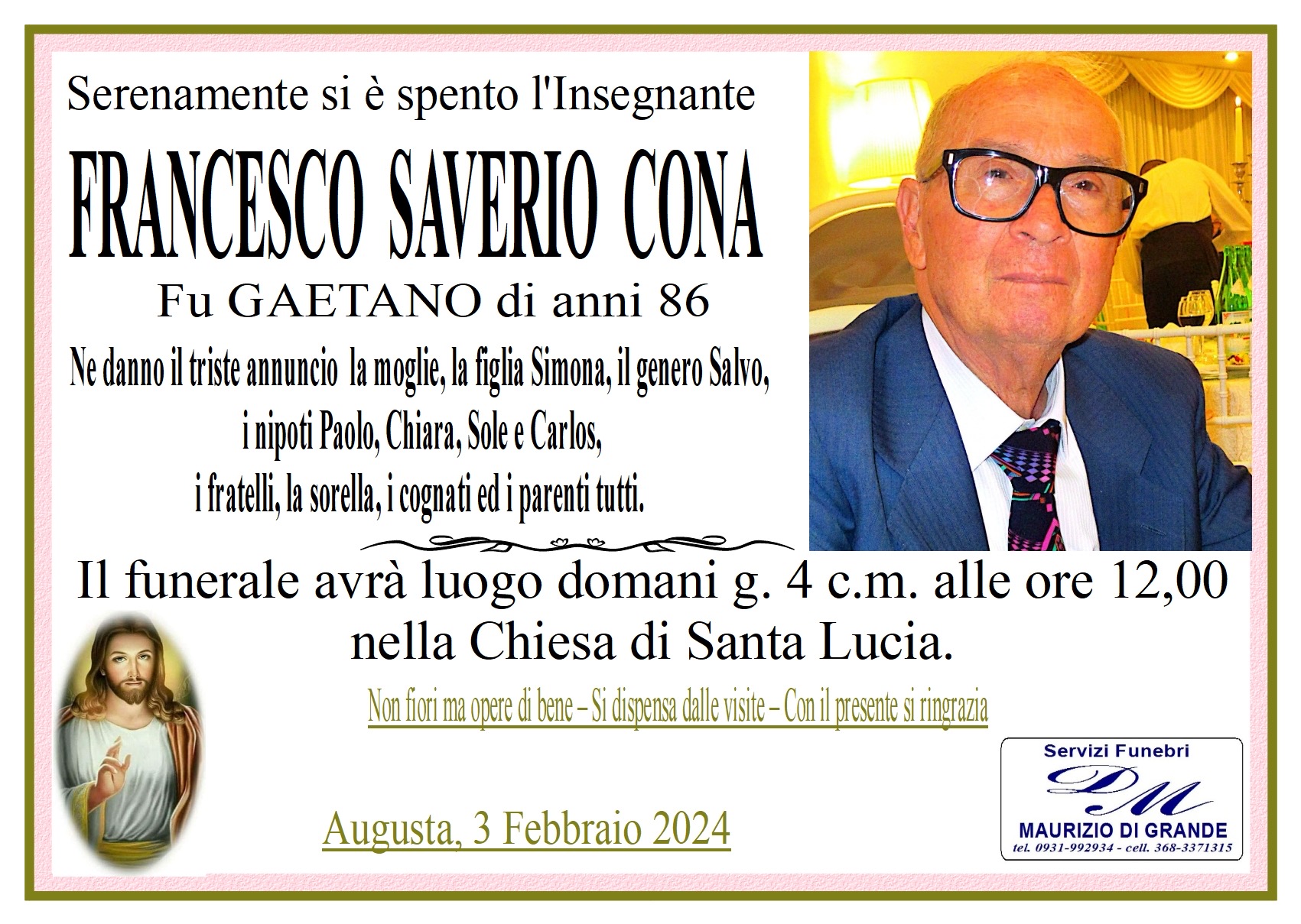 Necrologi – Si è spento l’insegnante Francesco Saverio Cona di anni 86