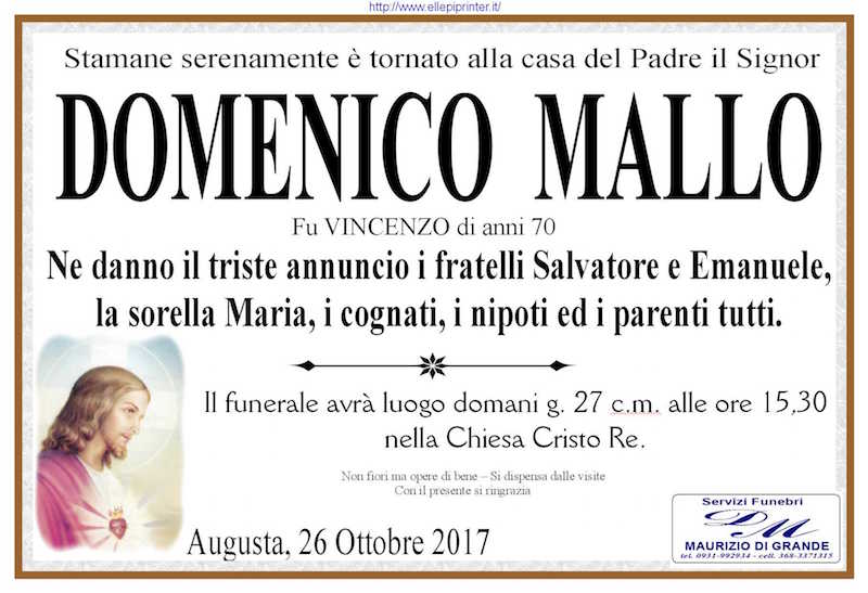Necrologi – Si è spento il signor Domenico Mallo di anni 70