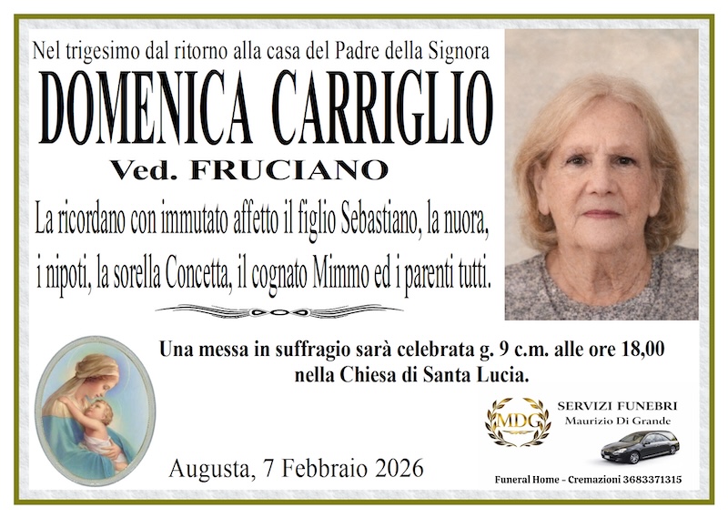Necrologi – Trigesimo – Messa in suffragio di Domenica Carriglio