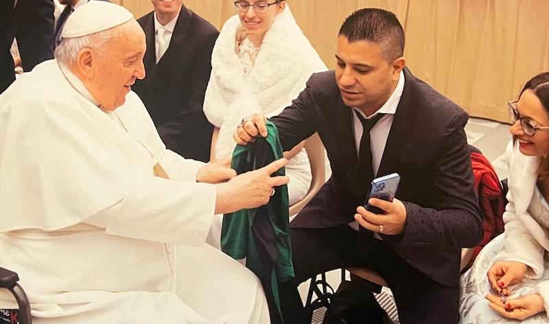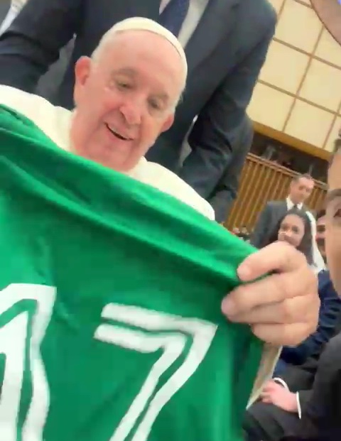 Papa Francesco riceve la maglia neroverde dell’Augusta