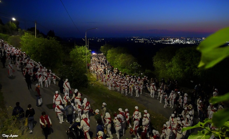 Invece per la storica “Via a San Sebastiano“, in siciliano “Viaggiu a Sammastianu di Miliddi”, da Palazzolo Acreide a Melilli, i “nuri” in abiti tradizionali partiranno la sera del 3 maggio alle ore 21,15, sono previsti alla mezzanotte e mezza il passaggio per la Valle dell’Anapo, alle 2,30 l’ingresso a Sortino, quindi alle 5 l’ingresso a Melilli con l’arrivo in piazza Rizzo alle 5,15 per il lancio delle lanterne in memoria dei “nuri” palazzolesi defunti e quindi alle 5,30 l’ingresso nella basilica santuario di San Sebastiano.