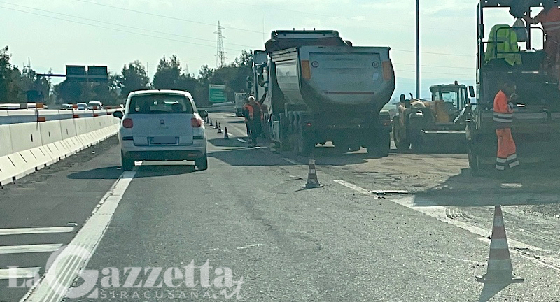 (Nella foto di repertorio in copertina: recenti lavori di pavimentazione del medesimo tratto in direzione Siracusa)