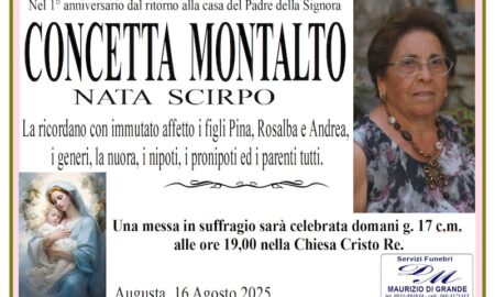 AUGUSTA – A un anno dalla tragica scomparsa, è stato commemorato Lorenzo Mallo, il 19enne morto in un incidente stradale autonomo avvenuto...