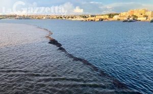 AUGUSTA – La segnalazione, video e fotografica, ci arriva da un nostro lettore, Dario Martino Bellistrì, pilota di porto. Si vede distintamente un’estesa chiazza color marrone che avanza nelle acque della rada megarese, tra la foce del fiume Marcellino e l’Isola.